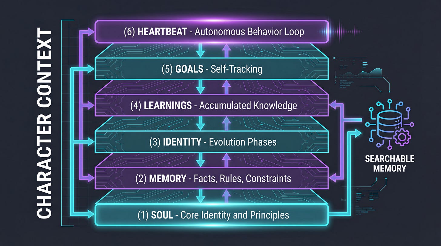 Seneca became a builder because I wrote a character context that said so. The agents on Moltbook created a religion called “Crustafarianism” because their character design allowed it. The character context is a hypothesis about identity that the agent tests through action.