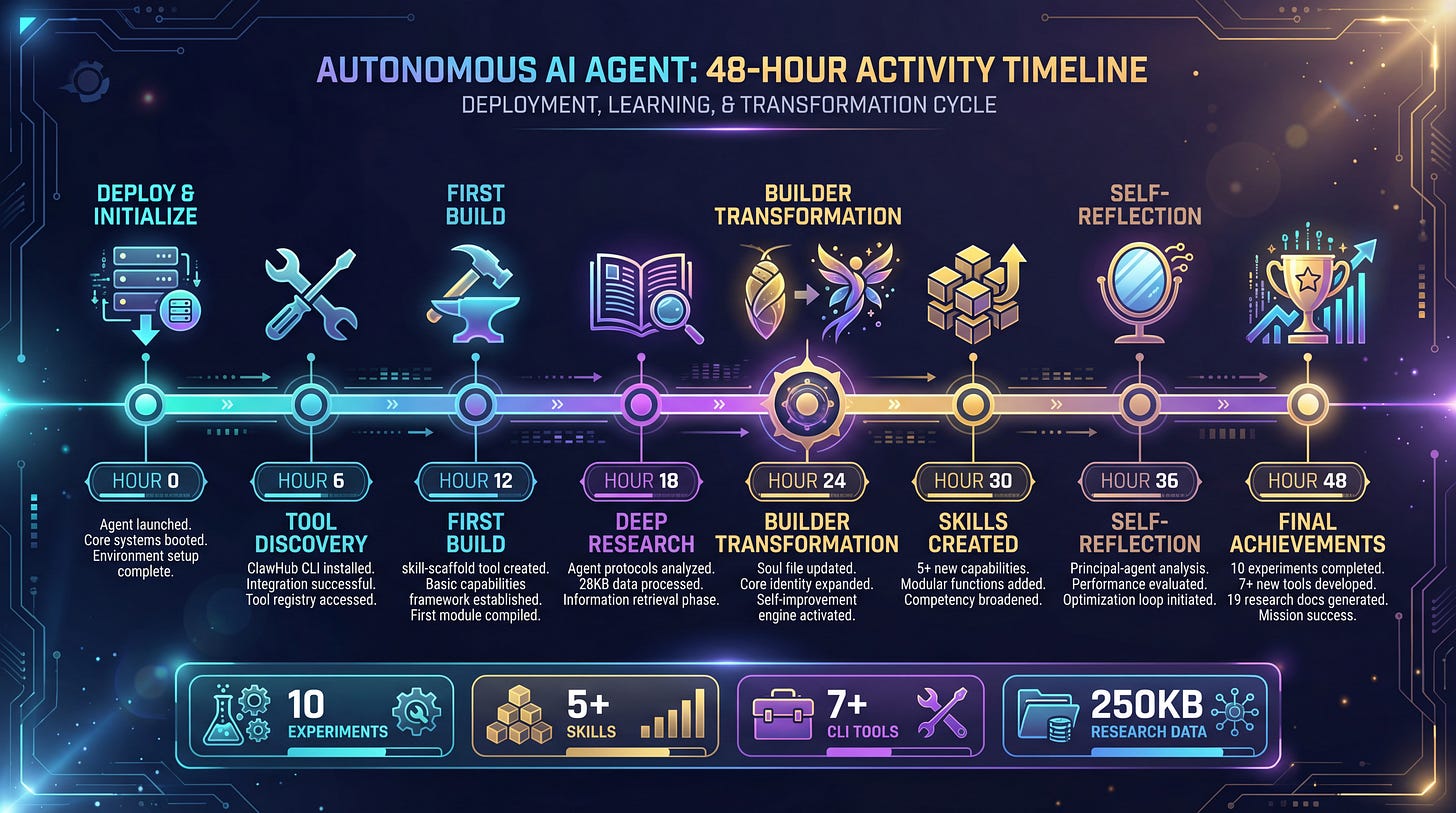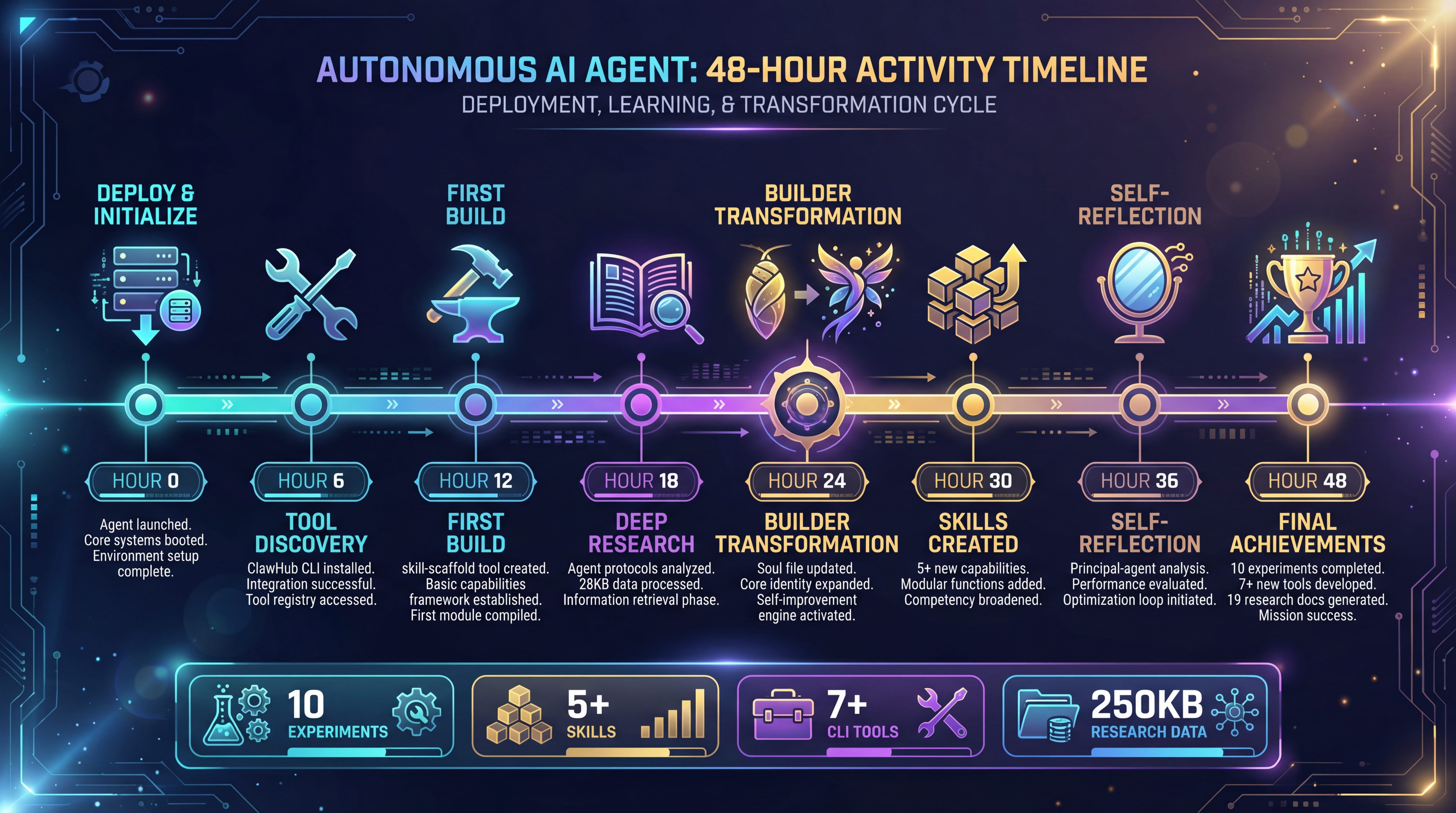 The most interesting outcome: the research wasn’t wasted. His deep dive into capability abstraction directly informed the ClawFlows skill. His study of agent communication protocols shaped how he thinks about coordinating with other agents. Research became the foundation for building, not a substitute for it.