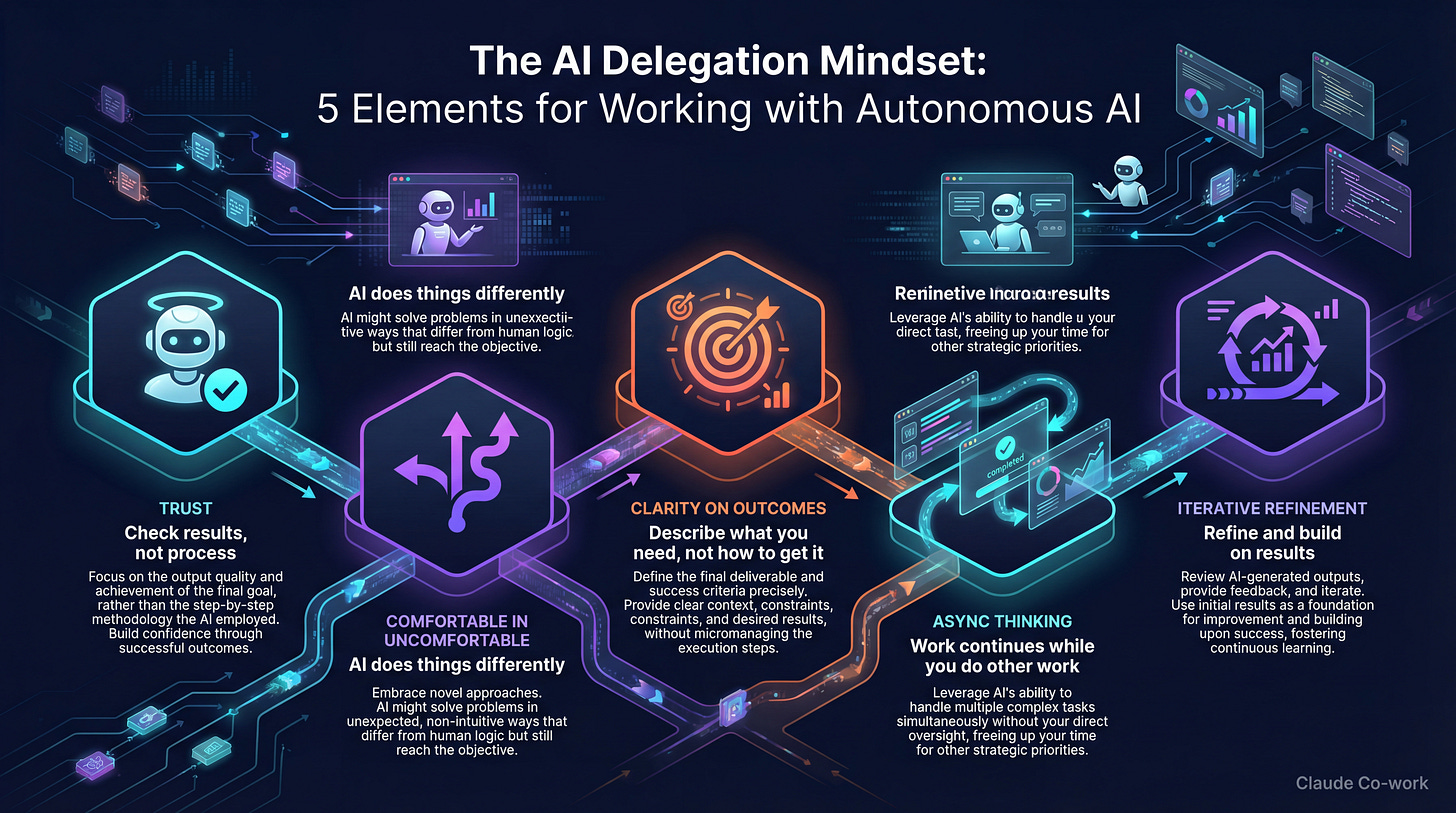 Brilliant framing of Co-work as an acces ibility unlock rather than a capability leap. The async delegation pattern (setting work running, going to meetings, coming back to completed analysis) mirrors how senior people work with teams but most haven't made that mental shift with AI yet. I've been experimenting with paralel research streams and the compounding effect is wild once you stop micromanaging every step and just check in when context-switching anyway.