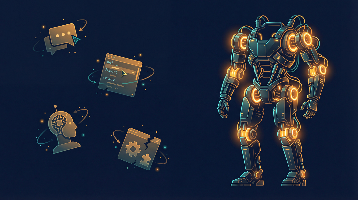 The metaphor I keep landing on is exoskeleton. I’ve used it before in The Data Paradox: AI isn’t your coworker, it’s your exoskeleton. A copilot sits next to you. An exoskeleton is load-bearing. You move differently because it’s on. You attempt things you would not attempt without it.