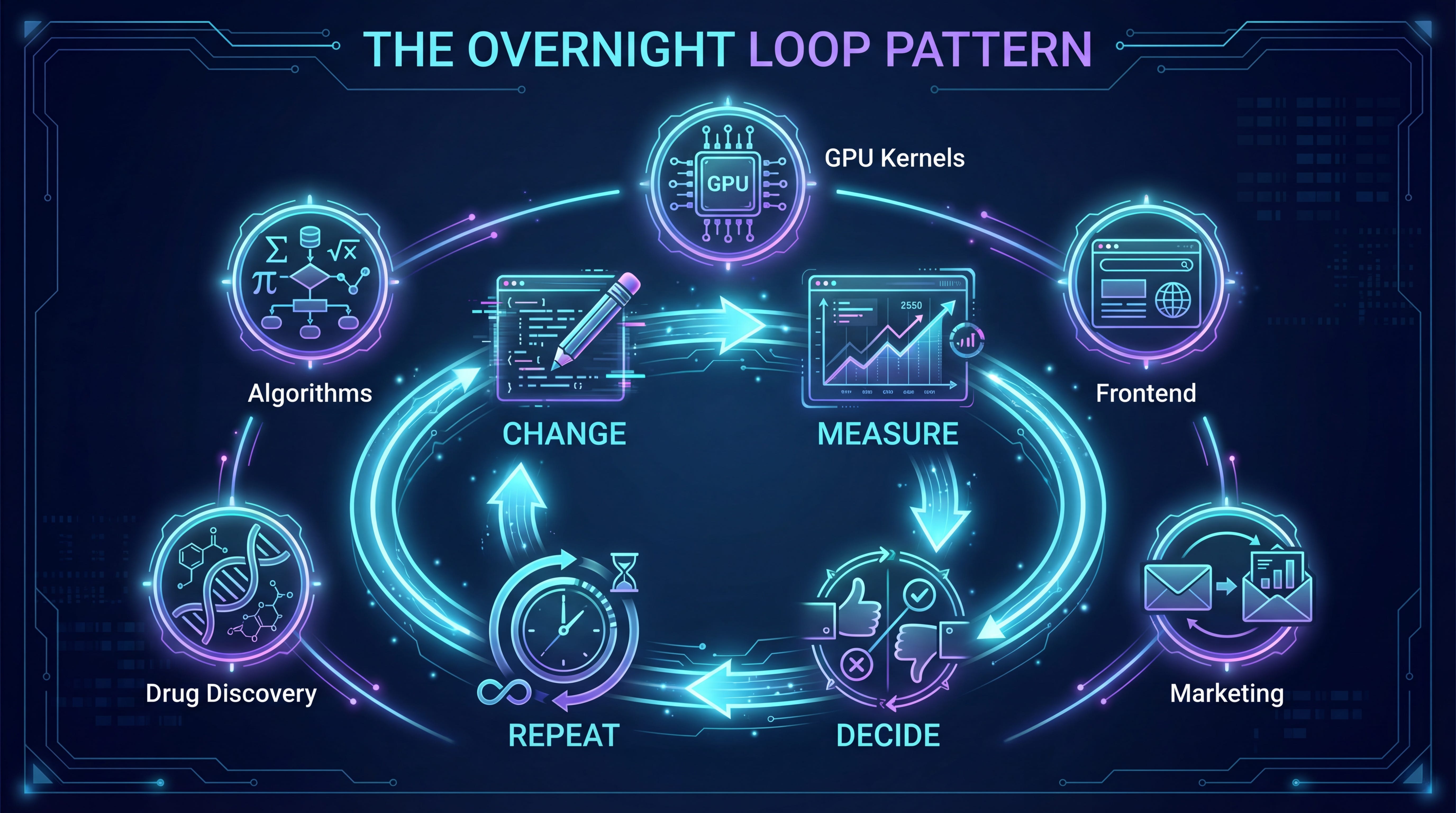 The overnight loop isn’t a breakthrough in machine learning. It’s a proof that the pattern works. On GPUs, on kernels, on landing pages, on molecular design. Anywhere you have something to change, a number to check, and the patience to let the clock run.